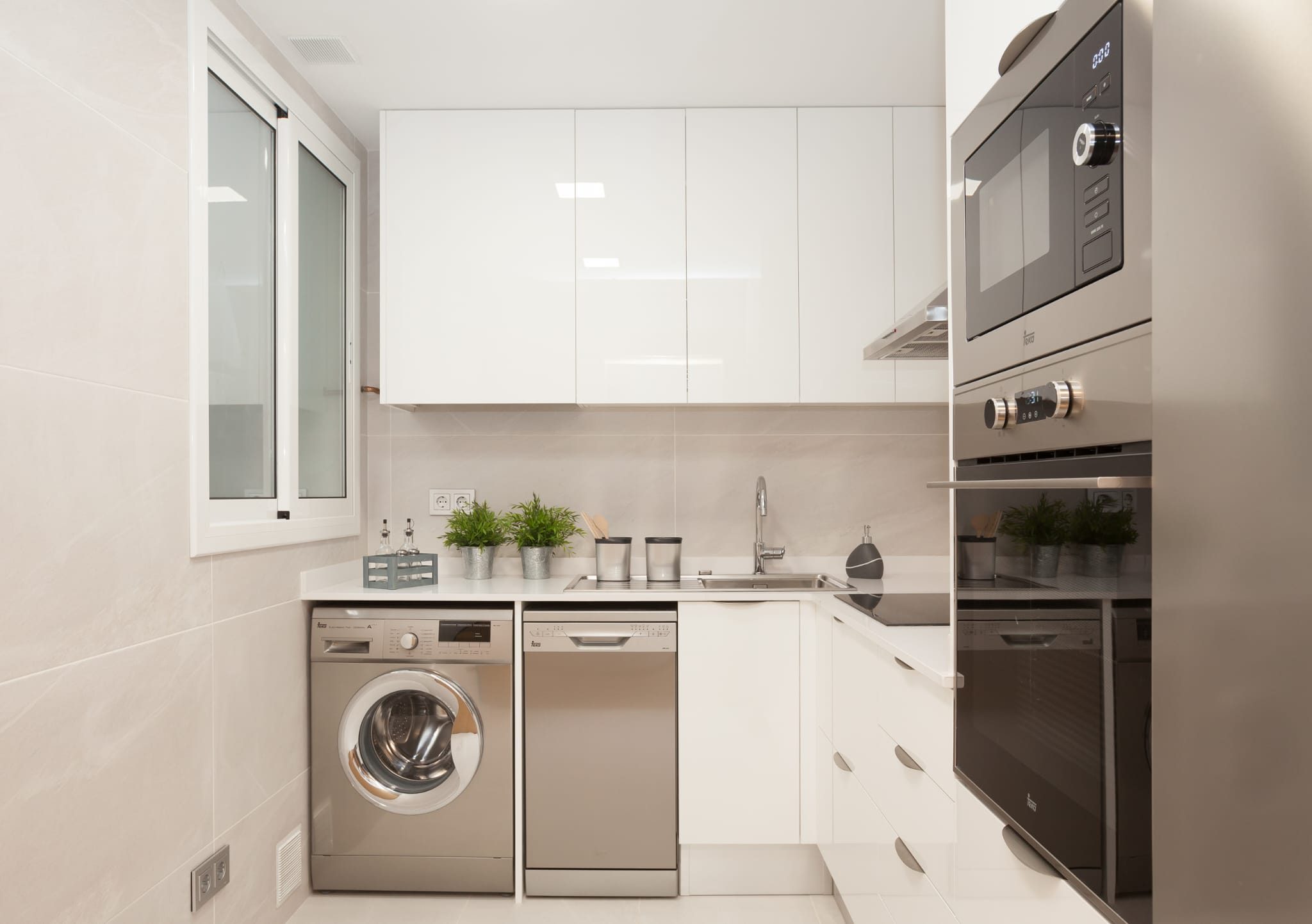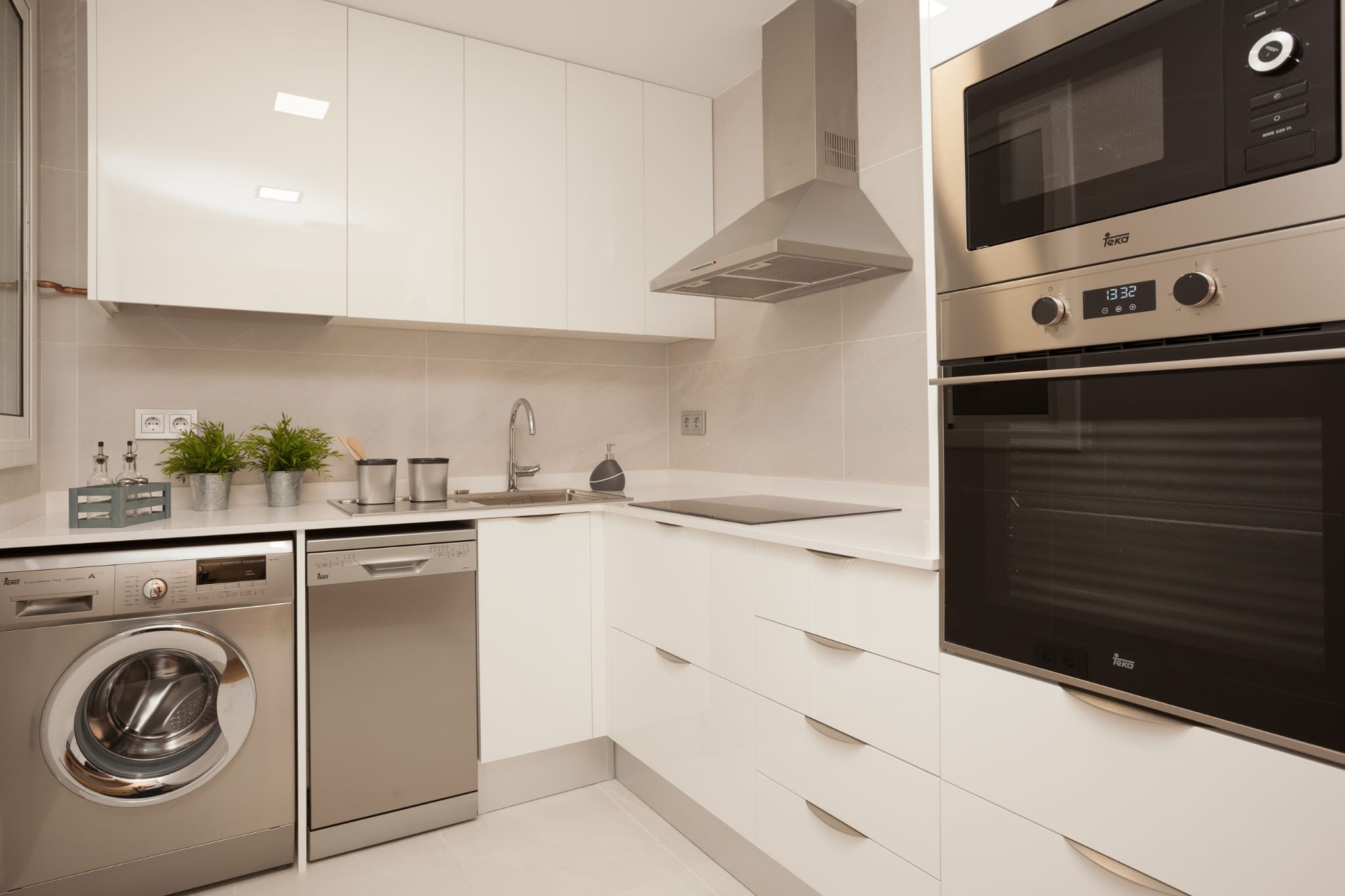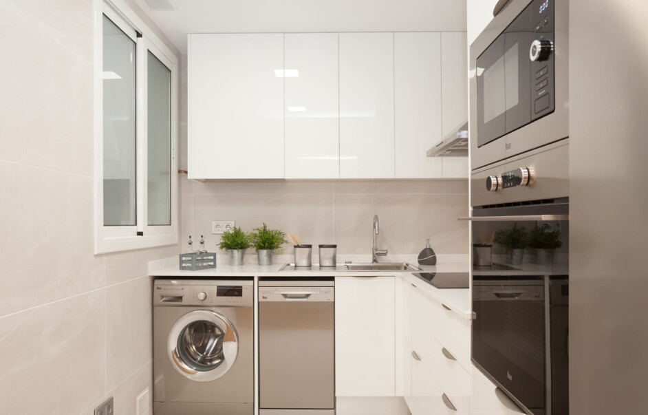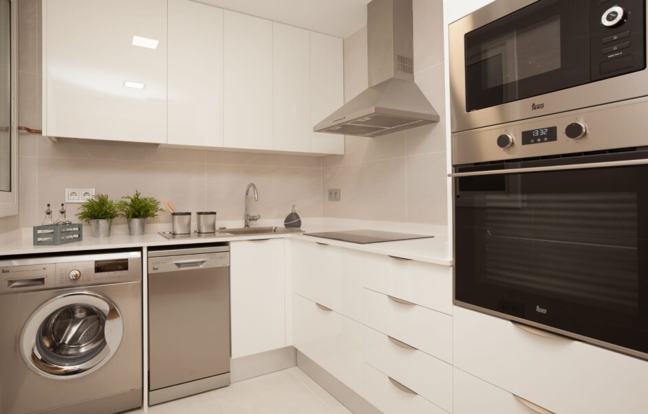 COCINA CON ARMARIOS ALTOS Y BAJOS Y EQUIPADA CON ELECTRODOMESTICOS.