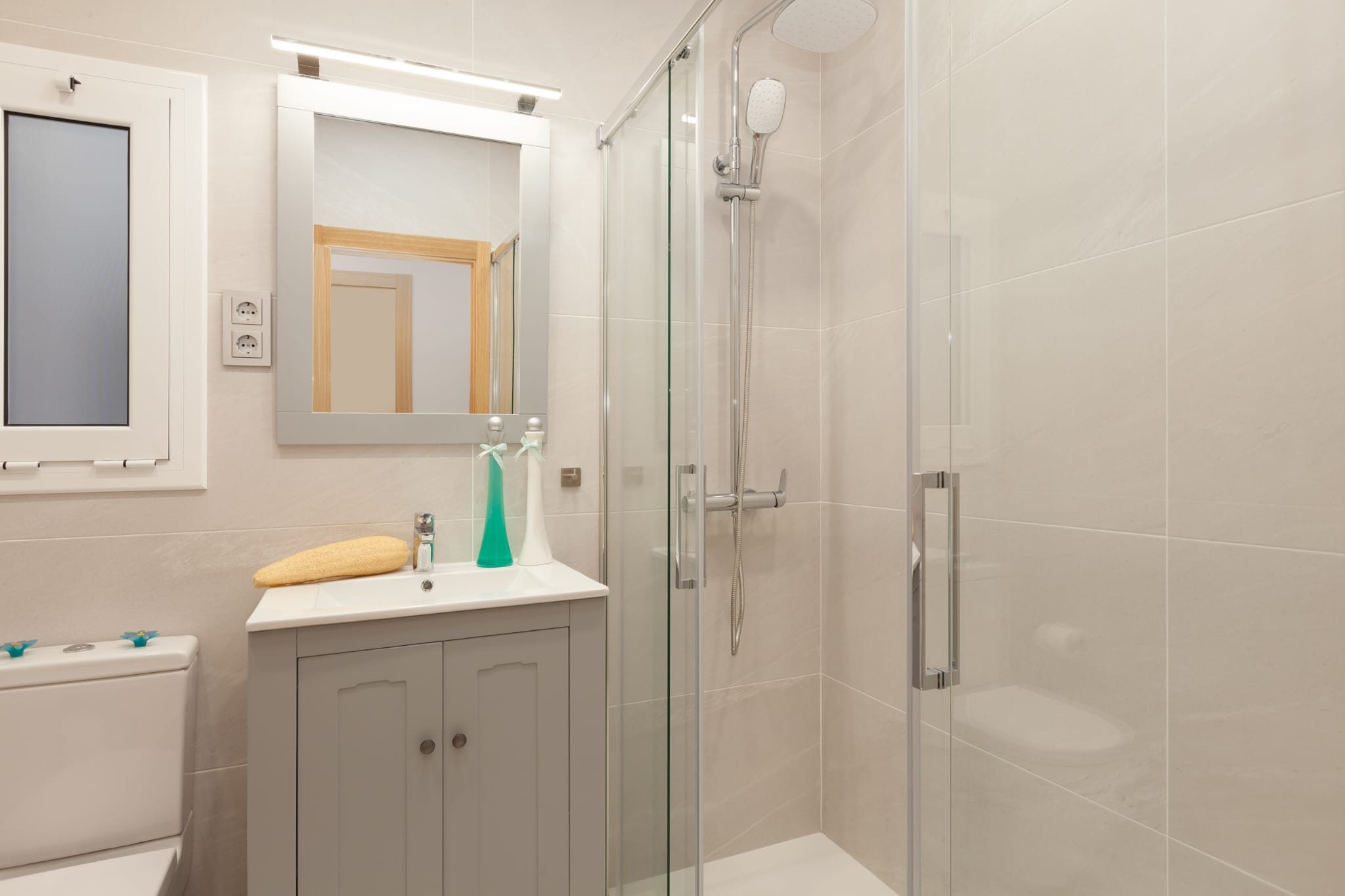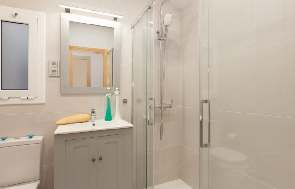 DOS BAÑOS TOTALMENTE EQUIPADOS CON WC, LAVAMANOS Y PLATO DE DUCHA CON MAMPARA.